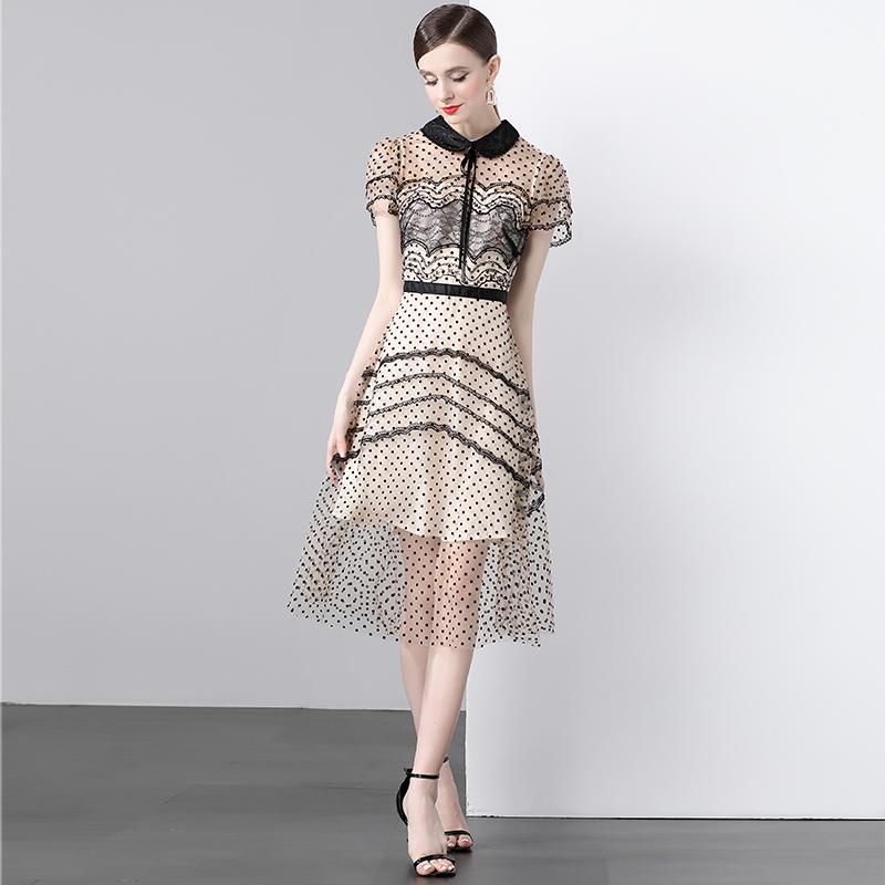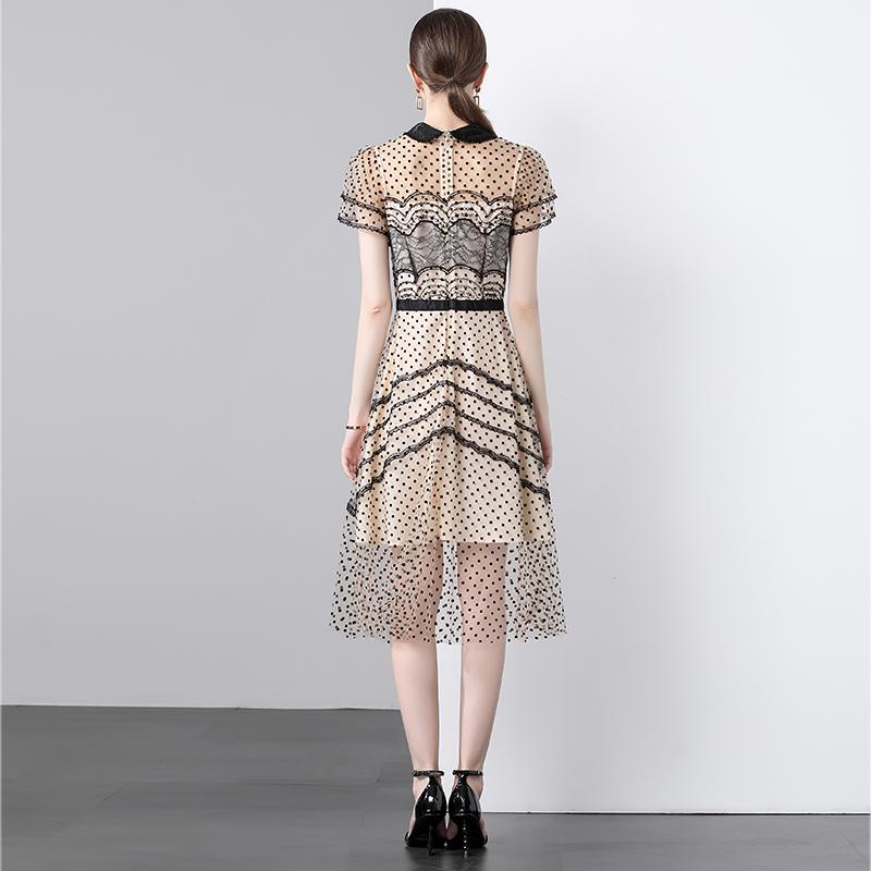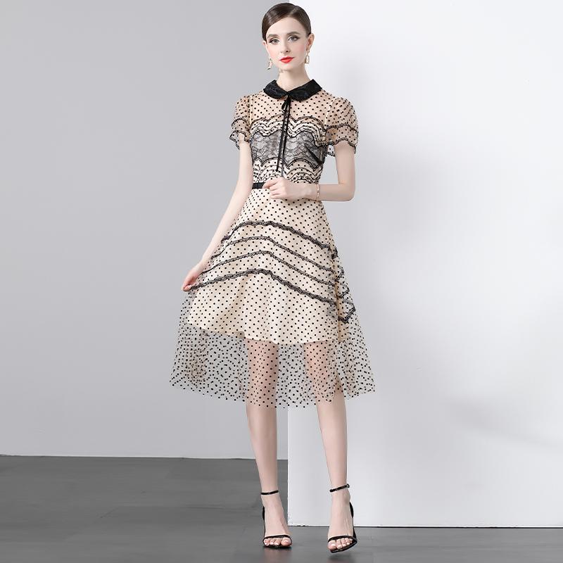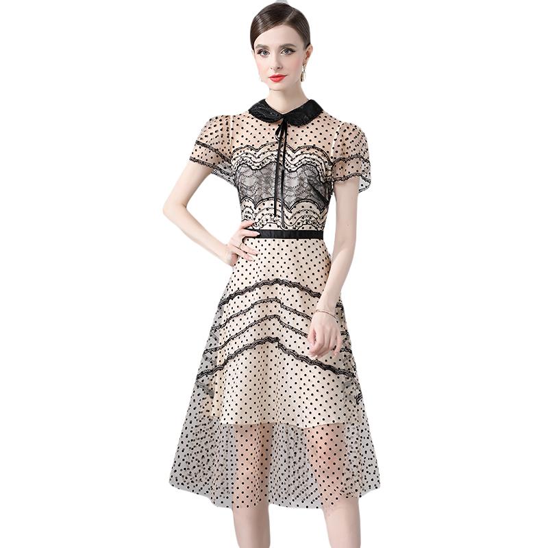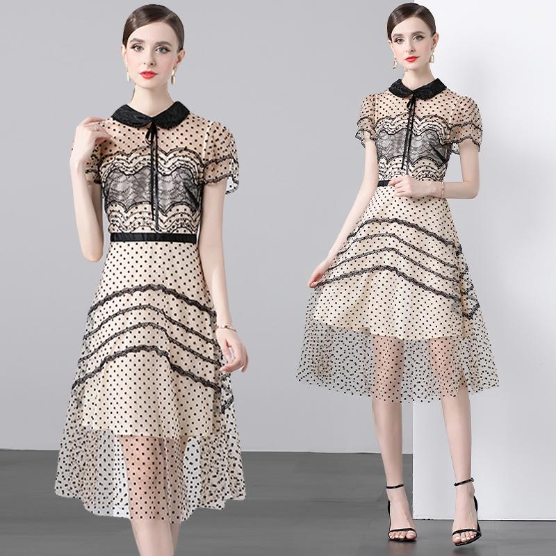 Новые модные летние платья из флока в сладкий горошек 2024, темпераментное короткое платье из кружевной сетки с короткими рукавами и вышивкой для женщин