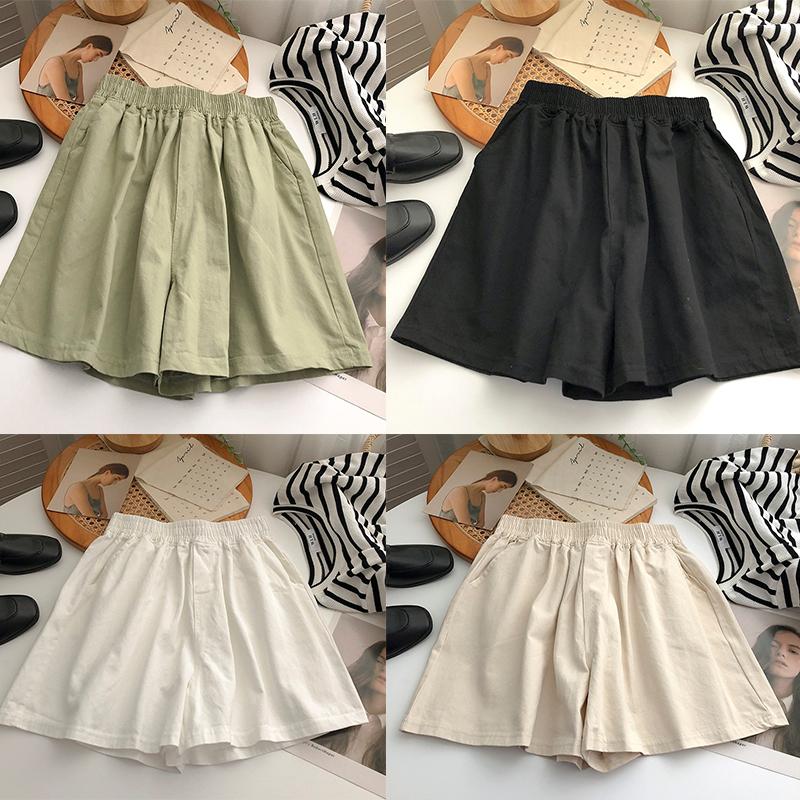 Летние шорты женские эластичные девушки корейский стиль милые Харадзюку простые чистые однотонные цвета свободные широкие шорты