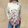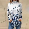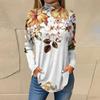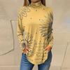 Женская модная повседневная футболка с длинным рукавом с высоким воротом и принтом, пуловер, топ