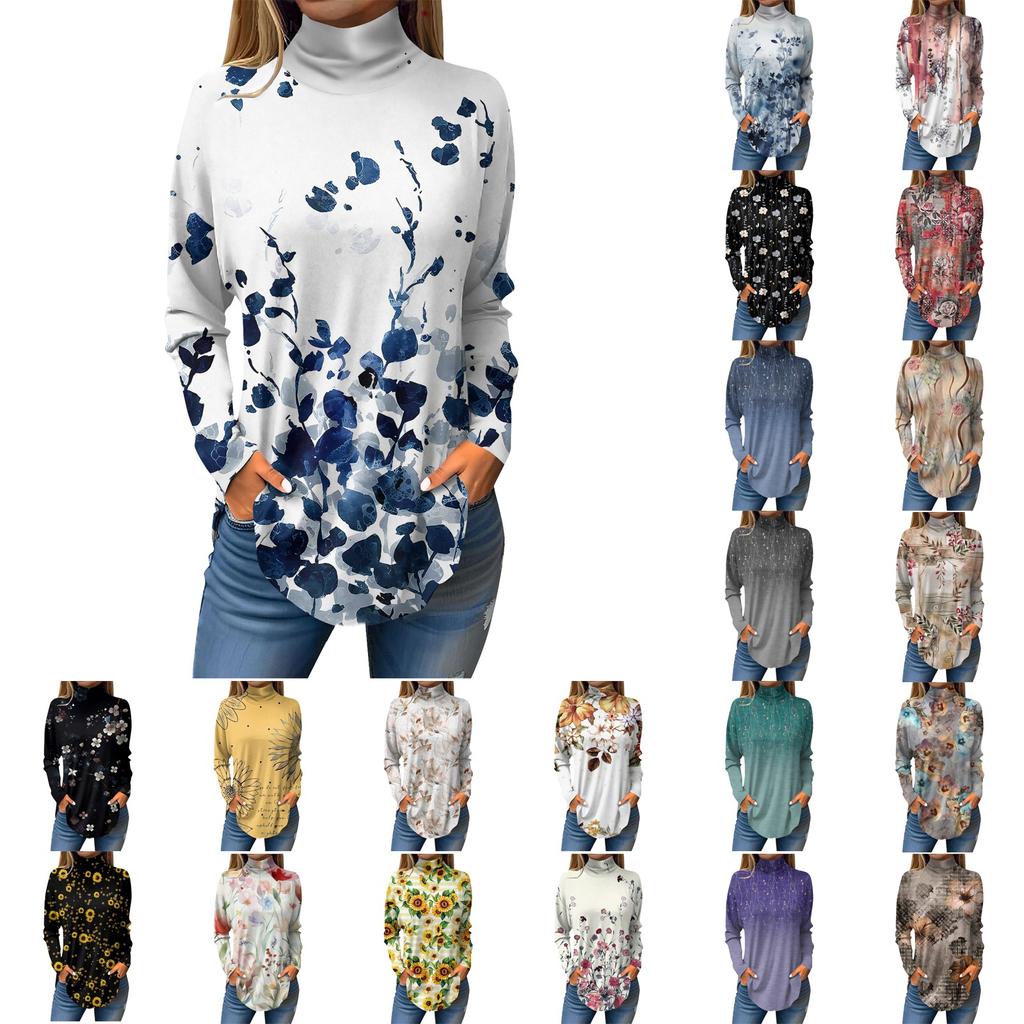 Женская модная повседневная футболка с длинным рукавом с высоким воротом и принтом, пуловер, топ — купить товар онлайн с бесплатной доставкой по всему миру!