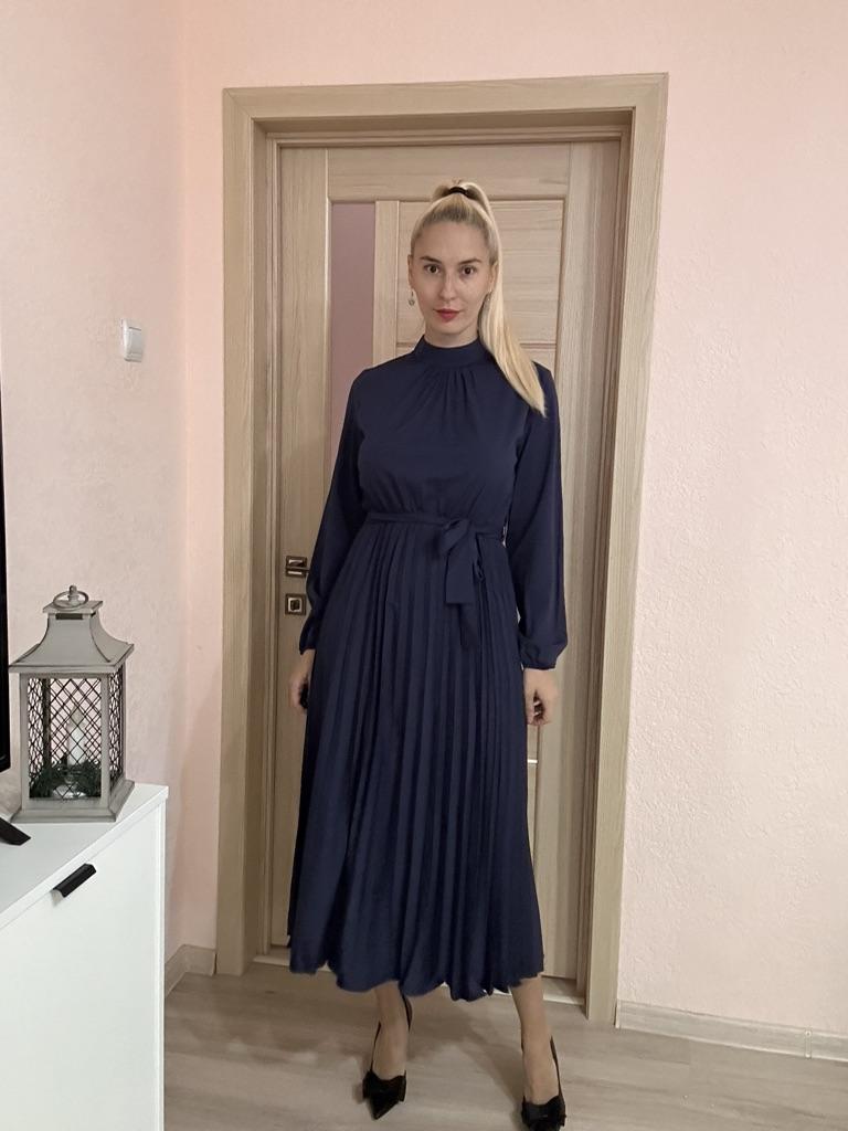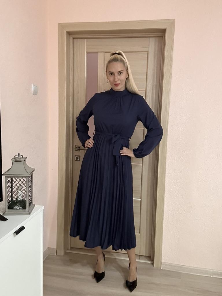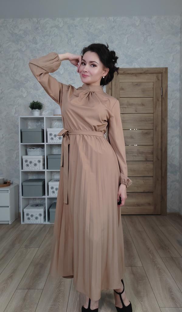 Платье от магазина Hi Dawn У продавца представлено в 7 различных цветах. Размерный ряд от S до XL. На мне размер S. На параметры фигуры 93-60-93, рост - 163 см; подошло хорошо. Точные замеры платья в размере S: ОГ - 98 см; Плечи - 39 см; ОТ - 62-82 см; Длина рукава - 62 см; Длина платья по спинке - 130 см. Материал: акрил-синтетика, но к телу приятная, не электризуется, не просвечивает. Ткань не тянется. Верх платья закрытый, имеет воротник-стойку. Застёгивается сзади на потайную молнию. Юбка плиссе, в комплекте поясок. Пошив фабричный, качество идеальное. Платье очень элегантное, рекомендую. Спасибо продавцу! ❤️ Спасибо Джум! ❤️