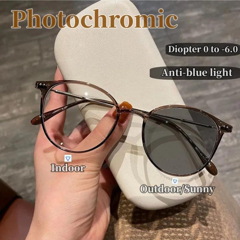 Роскошные фотохромные очки для близорукости в круглой оправе, солнцезащитные очки с защитой от синего света, меняющие цвет, очки по рецепту, минус диоптрии — купить товар онлайн с бесплатной доставкой по всему миру!