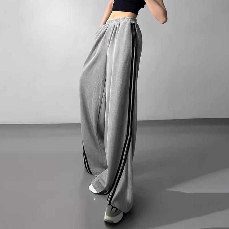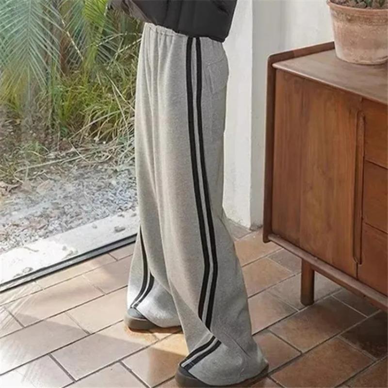 Спортивные штаны в полоску по бокам, спортивные штаны Kpop, женские серые брюки, женские свободные повседневные корейские уличные брюки в стиле хип-хоп