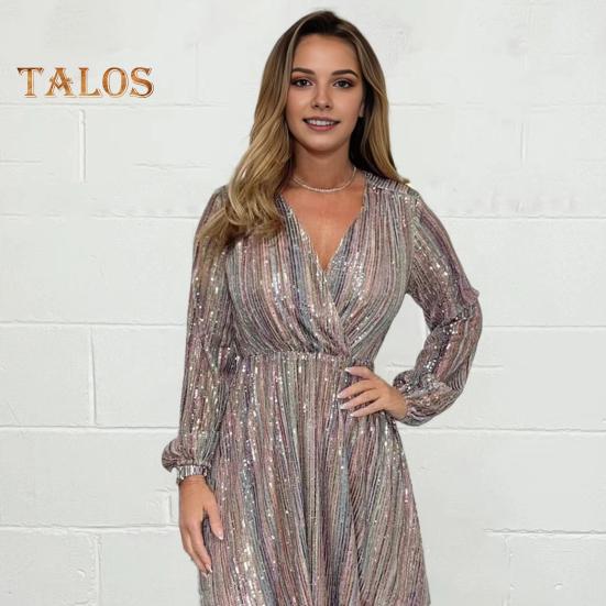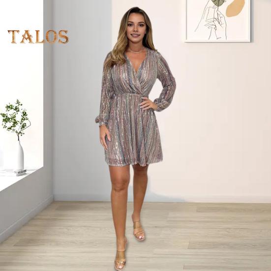 Элегантное, облегающее и облегающее бедра платье излучает элегантность и очарование.. V-образный вырез и заниженная талия подчеркнут вашу фигуру, а силуэт А-силуэта подчеркнет вашу фигуру.. Это платье, украшенное яркими пайетками и расшитым пайетками рукавом-фонариком, одновременно модное и удобное благодаря высококачественной полиэфирной ткани.