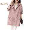 Осень-весна женское пальто с капюшоном на молнии с длинными рукавами Свободный кардиган на шнурке Пальто средней длины с карманами Тонкая повседневная одежда Рабочая уличная ветровка