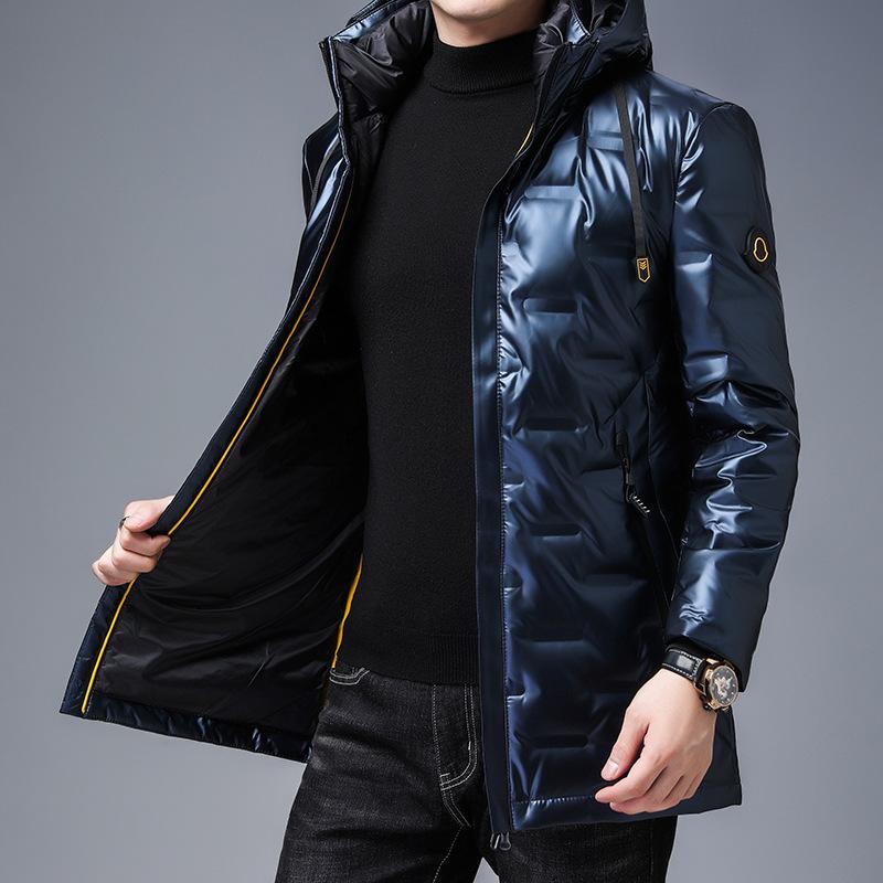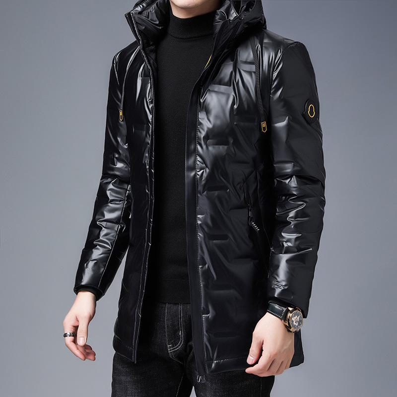 Пуховик мужской средней длины зимняя корейская молодежная куртка больших размеров со съемным капюшоном модная повседневная куртка