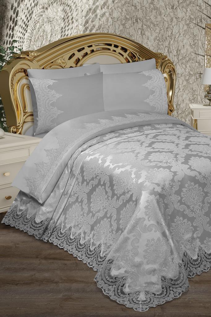 Alev King Size Комплект покрывал 6шт, Покрывало 230х240, Простыня 230х240, Кровать двуспальная, Ткань Парча Серый