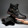 Мужские мотоциклетные ботинки, винтажные ковбойские короткие сапоги с круглой головкой, конские сапоги
