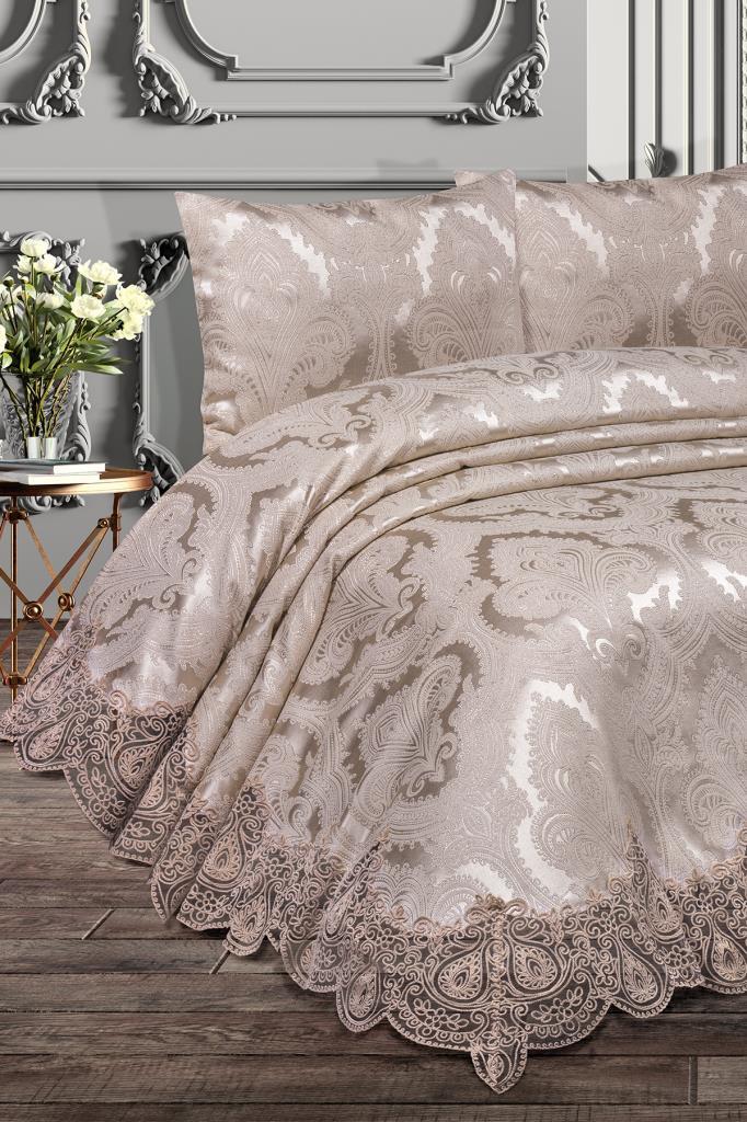 Комплект покрывал Sinem 3шт, Покрывало 240х260, Наволочка 50х70, Двойной размер, Капучино