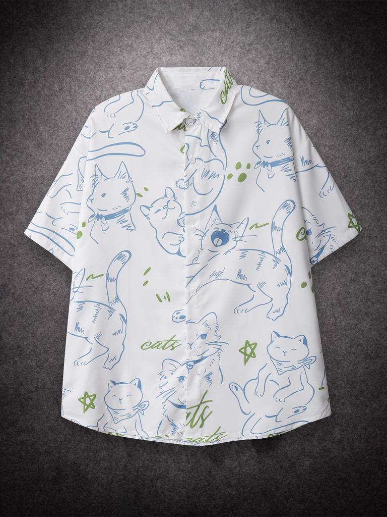 Рубашка свободного покроя свободного покроя с рисунком кота Prinr Hawaii Short Men Shirt Man American Printing Summer Universal для пар в уличном стиле