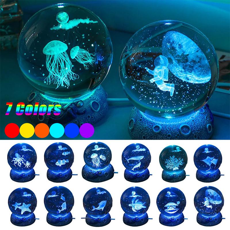 Хрустальный шар, ночные огни, светящиеся морские медузы, астронавт, настольная лампа, USB-лампа, атмосферная лампа, настольные украшения, подарки для детей, ночник — купить товар онлайн с бесплатной доставкой по всему миру!