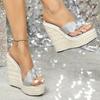 Женские босоножки на платформе, сексуальные, соломенные, простые, с высоким наклонным каблуком, водонепроницаемые, модель Table Model, 15 см, тапочки на танкетке LFD-10368-A66