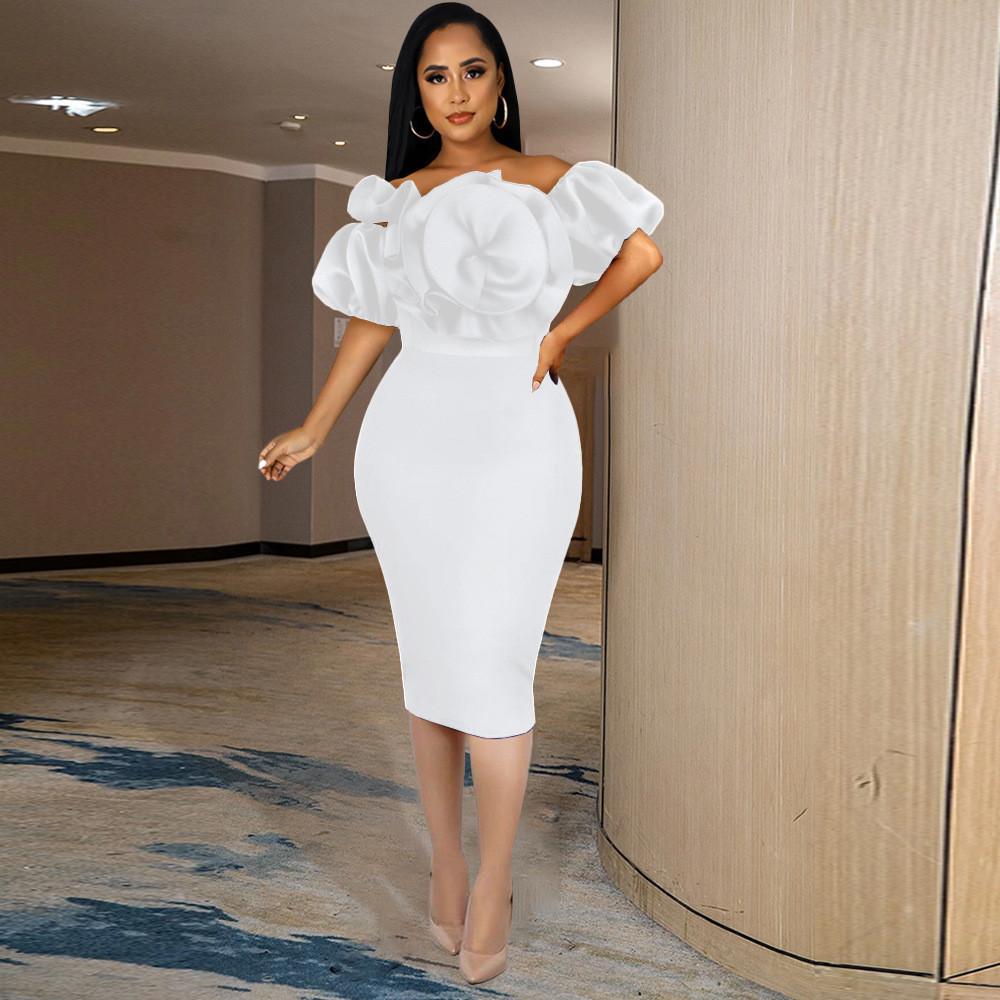 Модное женское элегантное платье с открытыми плечами и цветочными рюшами с короткими рукавами, подружки невесты, свадебное длинное платье миди, вечерние платья
