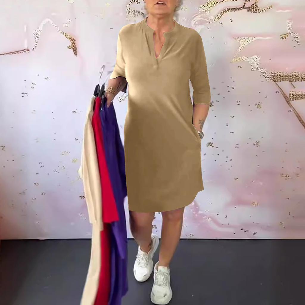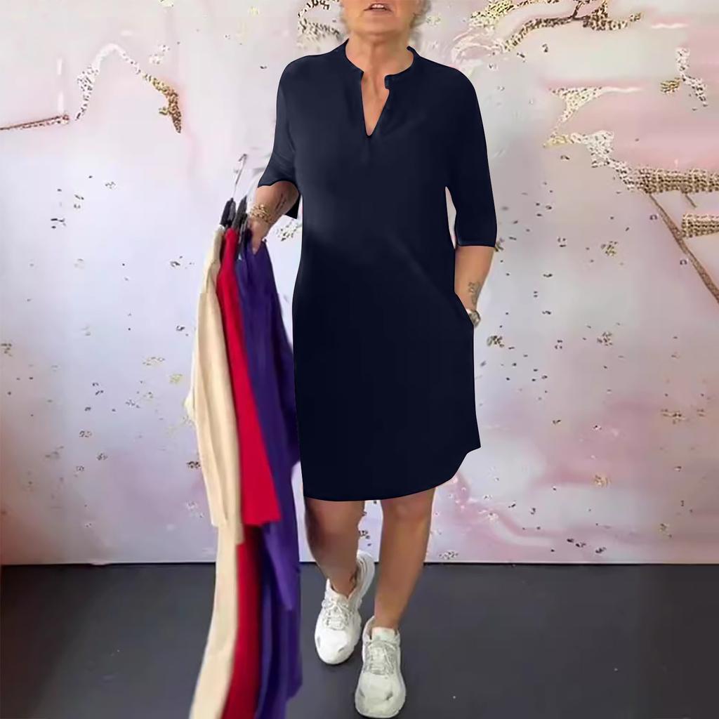 Женское модное свободное повседневное однотонное платье с V-образным вырезом и рукавами миди с карманами