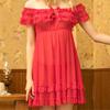 Женская кружевная атласная винтажная ночная рубашка с коротким рукавом, пижамы, одежда для сна