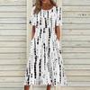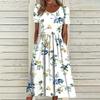 Женское летнее повседневное модное платье с коротким рукавом и карманом с цветочным принтом и круглым вырезом