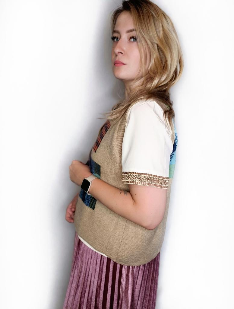 DIMANAF 2024 зима-осень женский клетчатый жилет без рукавов вязаный модный свободный свитер оверсайз в повседневном стиле