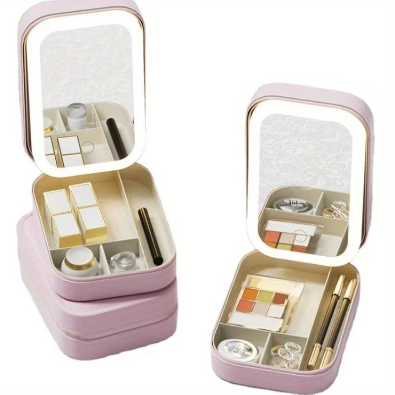 Многофункциональное косметическое зеркало со светодиодной подсветкой, косметичка, ящик для хранения ювелирных изделий и косметики