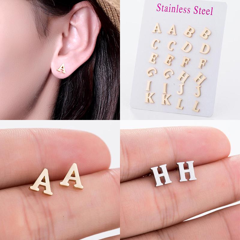 Модные 1 пара девочек для женщин, персонализированные простые модные серьги из нержавеющей стали с 26 буквами AZ, ювелирные изделия с алфавитом