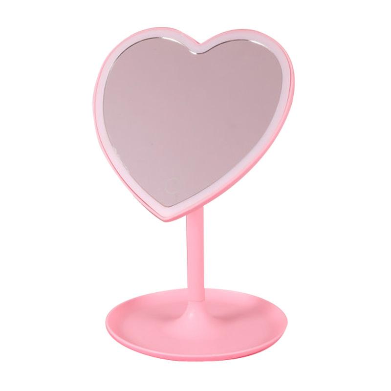 Зеркало для макияжа в форме сердца со светодиодной подсветкой, 3-х цветное, на подставке, настольное, перезаряжаемое, косметическое, портативное, с подсветкой — купить товар онлайн с бесплатной доставкой по всему миру!