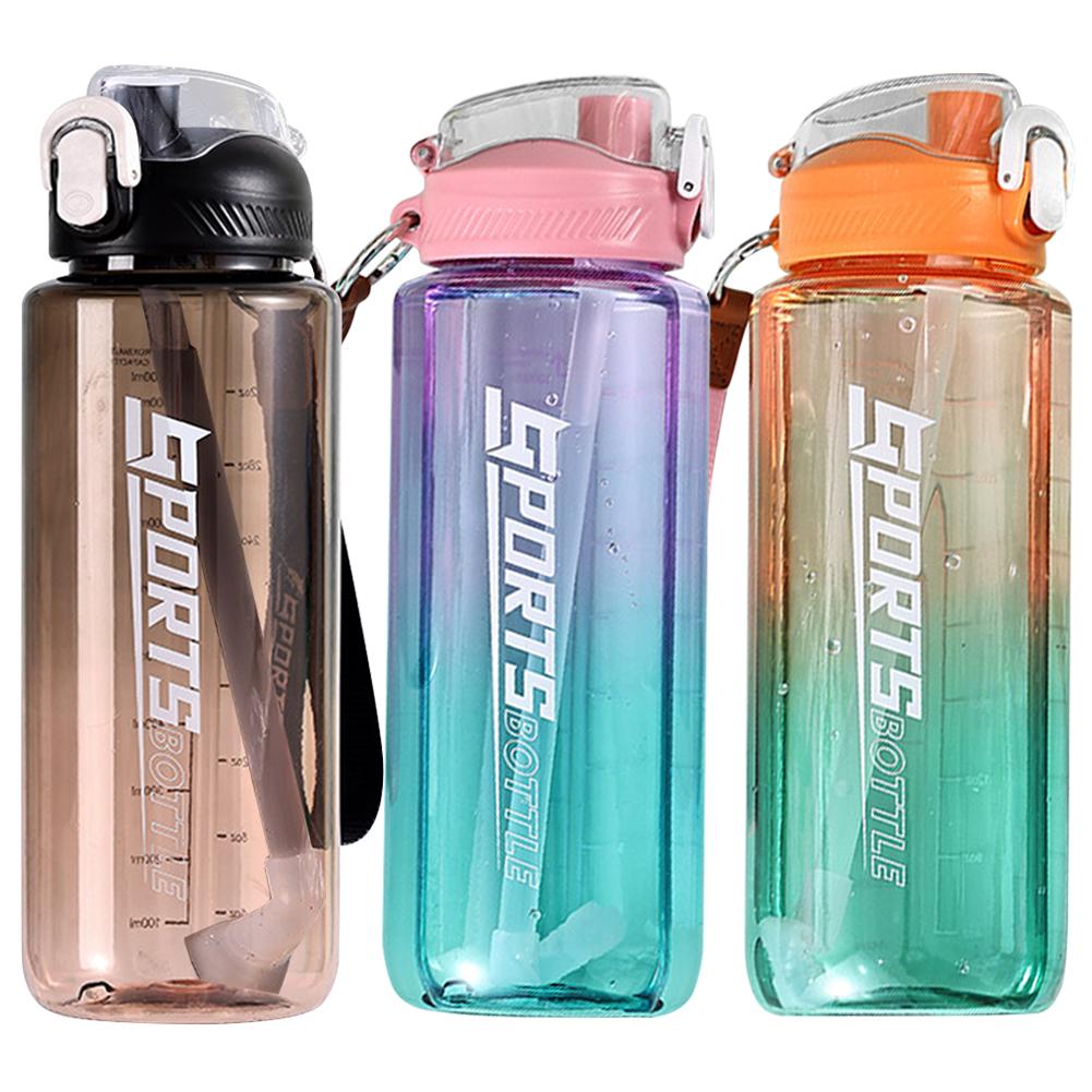 Портативная чашка для питья на 1000 мл, герметичная спортивная бутылка для воды, градиентная чашка для воды, без бисфенола А, с маркировкой емкости для кемпинга, езды на велосипеде на открытом воздухе