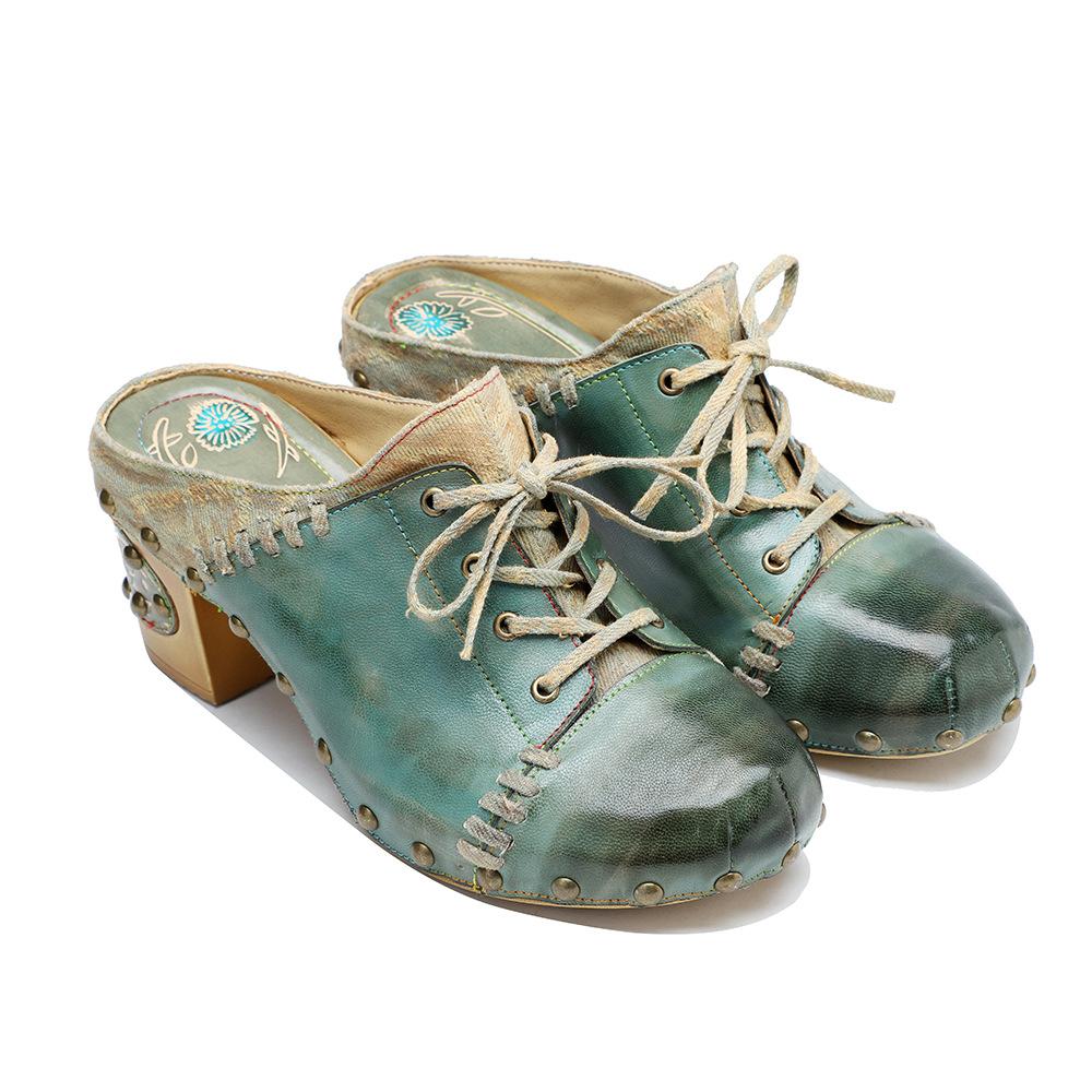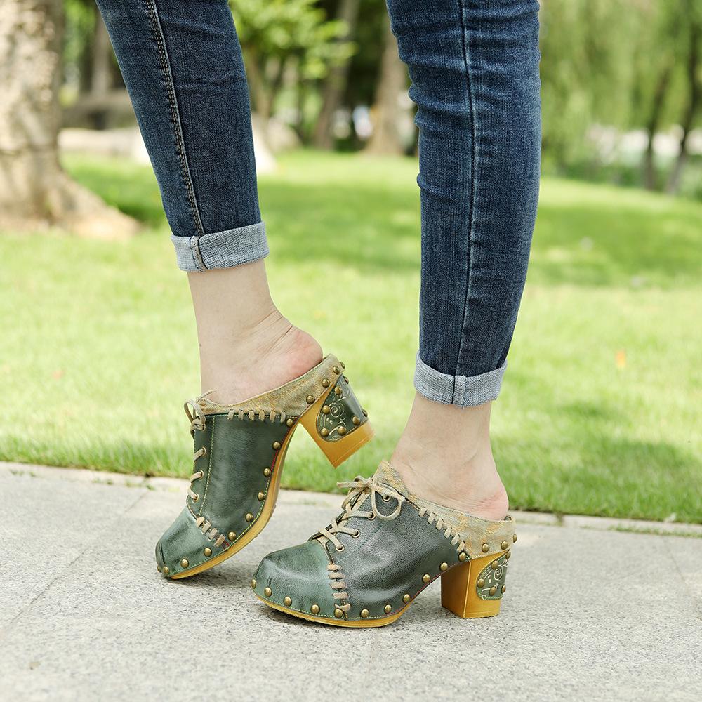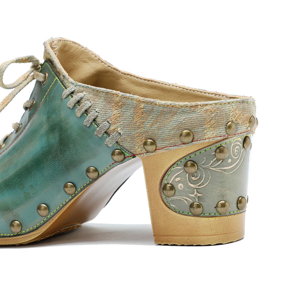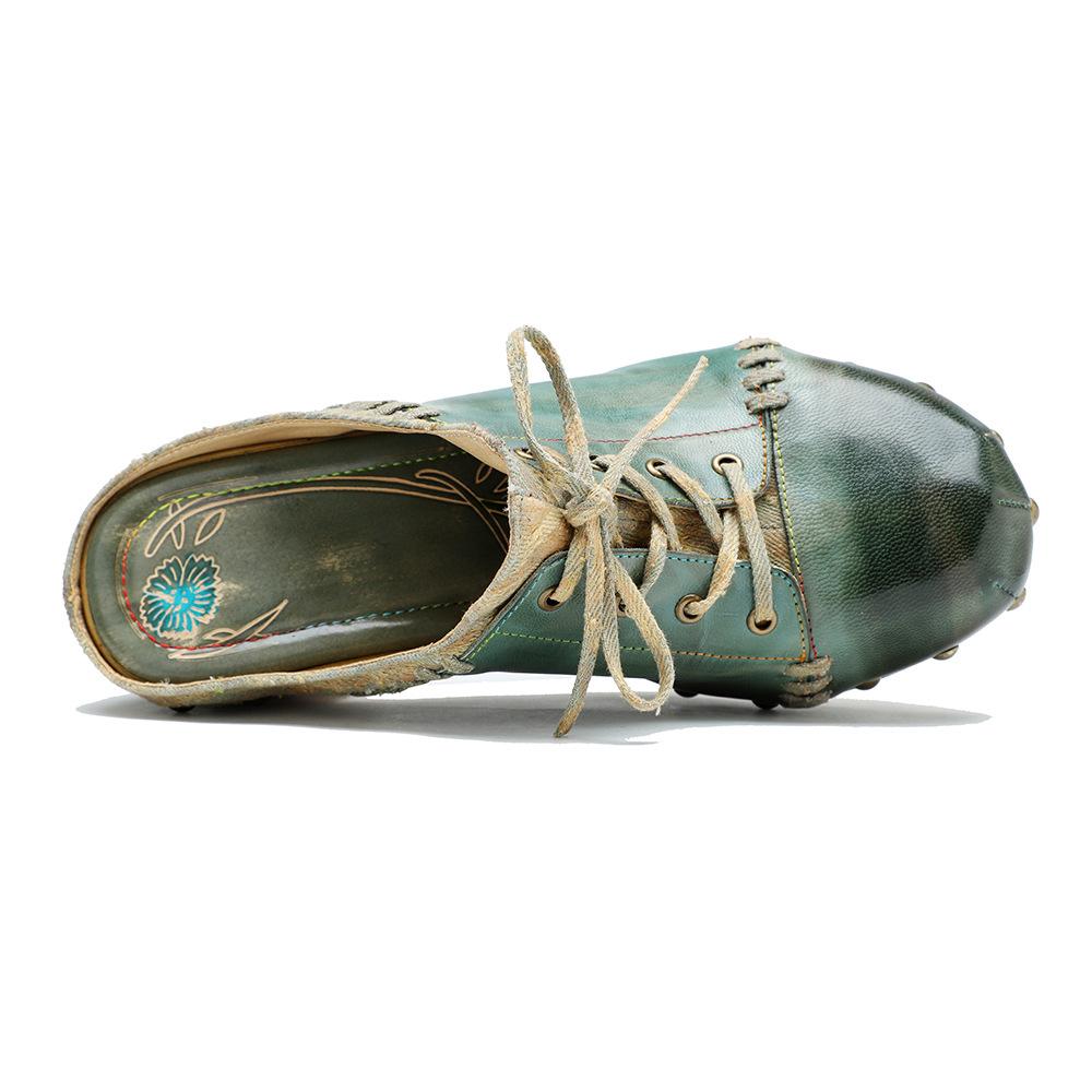 Кожаные лоскутные туфли на высоком каблуке с тиснением в стиле ретро, расписанные вручную, универсальная женская обувь