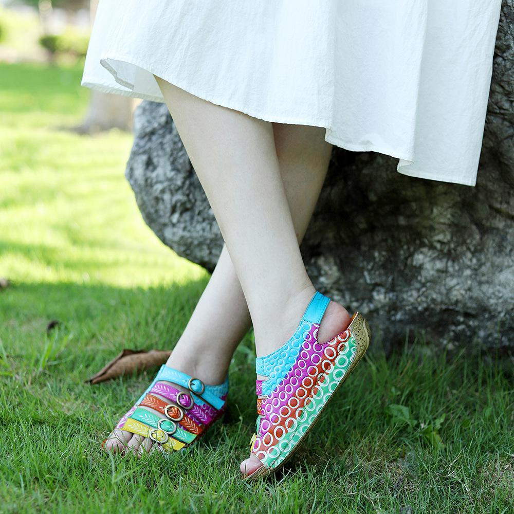 Женские красочные босоножки на массивном каблуке, декорированные стразами, без шнуровки, с открытым носком, на среднем каблуке, стильные повседневные сандалии