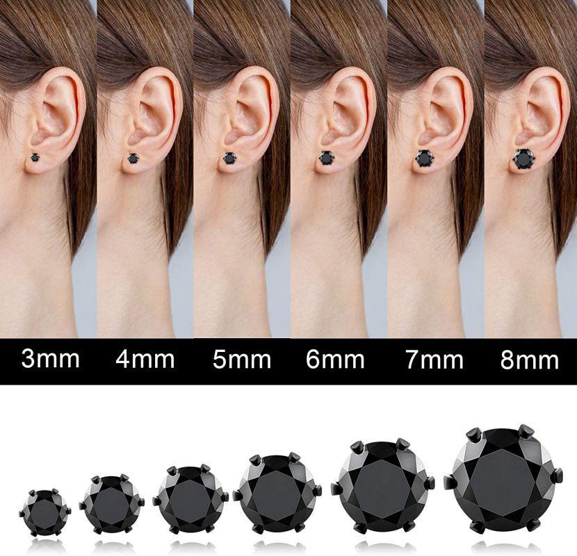 Подарок 3/4/5/6/7/8 мм серьги из нержавеющей стали с кристаллами, модные серебряные/черные женские и мужские украшения для тела, круглые серьги-гвоздики