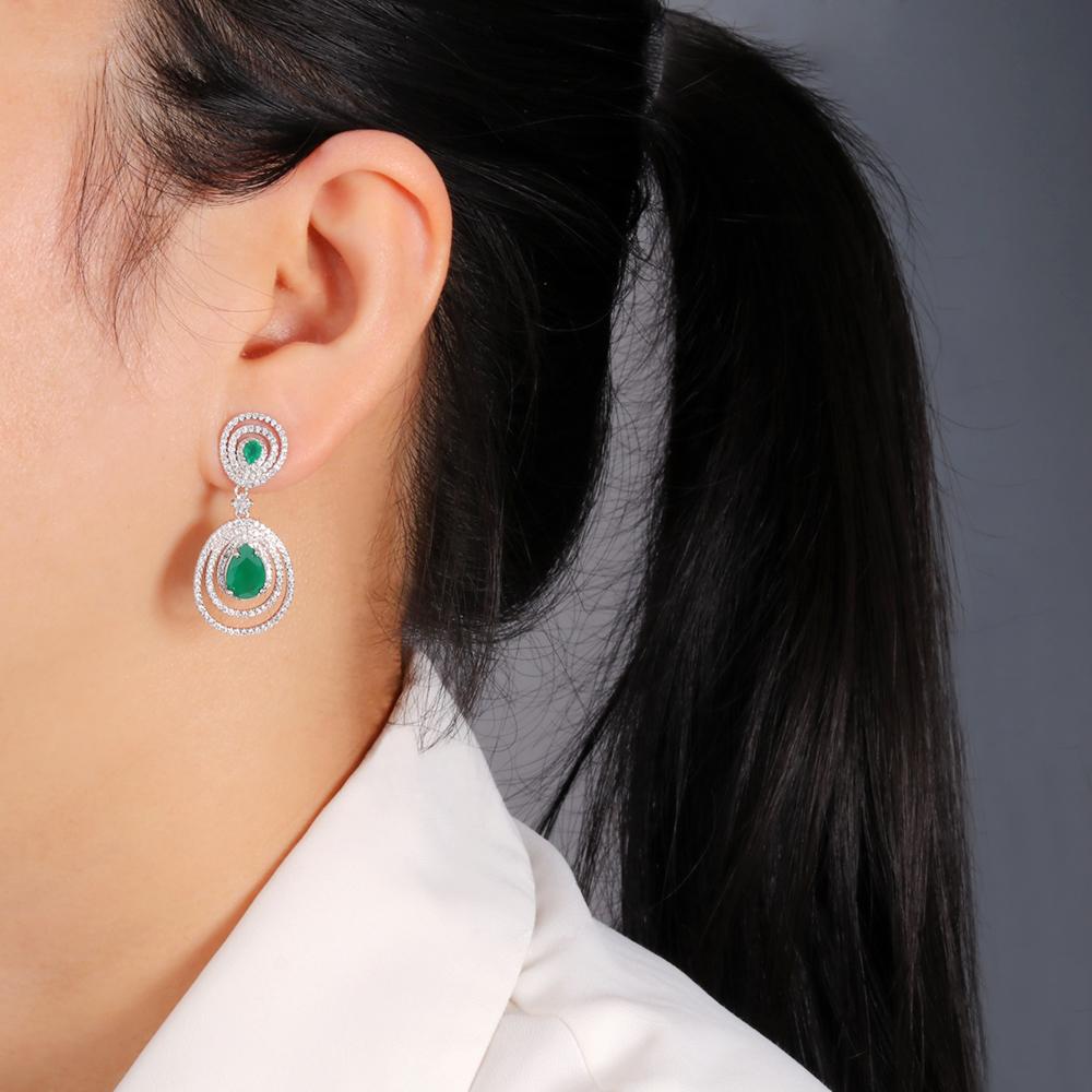 Потрясающие дизайнерские серебряные серьги-гвоздики с подвесками из натурального зеленого агата, эффектные серьги с камнем мая, роскошные ювелирные изделия, подарок для леди