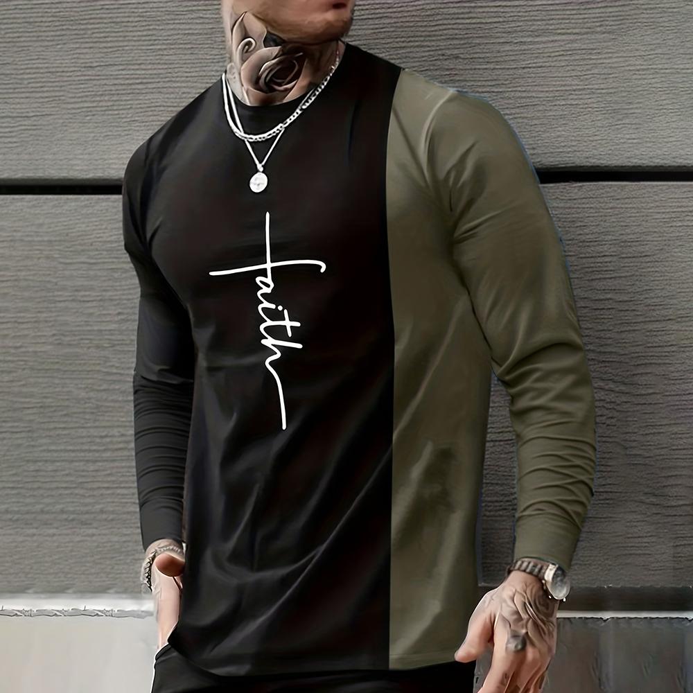 Винтажная футболка с 3D-принтом и простым крестом, повседневная, с длинным рукавом, мужская, свободная, с круглым вырезом, удобная толстовка, европейская одежда 7Xl