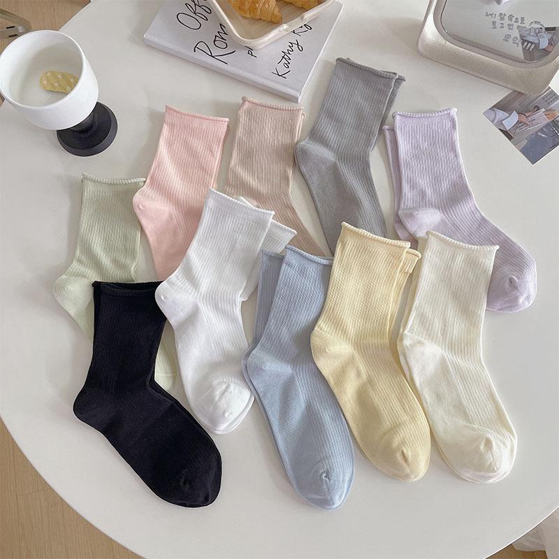 Однотонные женские носки, хлопковые тонкие дышащие эластичные длинные носки, школьные носки в японском стиле для девочек, черные, белые, серые, средние носки-трубы — купить товар онлайн с бесплатной доставкой по всему миру!