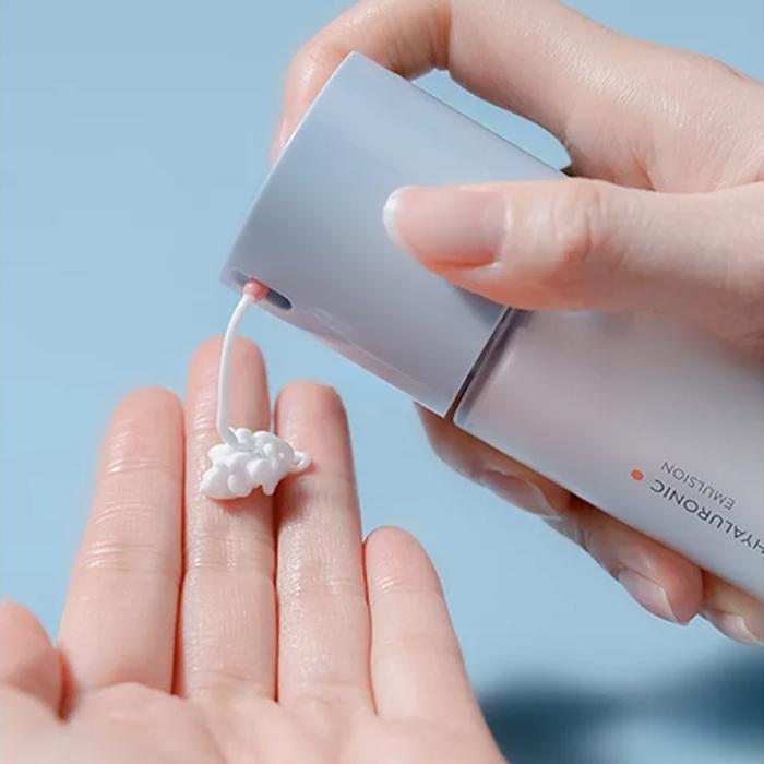 Интенсивная увлажняющая эмульсия с ультрамаленькой синей гиалуроновой кислотой размером 1/2000* от исходного размера восстанавливает поврежденный кожный барьер и создает плотный увлажняющий слой глубоко внутри кожи, придавая ей шелковистость и сияние.