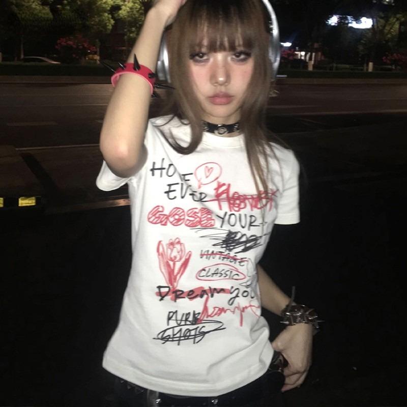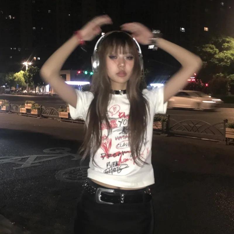 Японская футболка Y2k с эстетикой 2000-х годов, граффити, топы с графическим принтом, футболка с короткими рукавами, футболки E-girls Goth, гранж