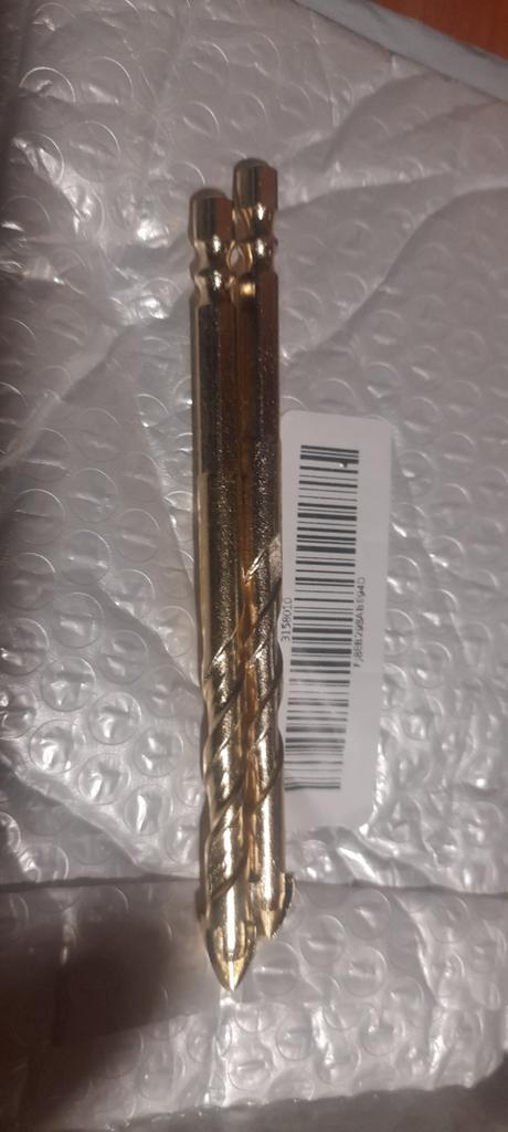 Ложка пришла переломаной. Сверла по бетону окрашены в один цвет, золотистый. Завтра проверю в работе краска сотрется и увижу из чего изготовлена режущая часть.