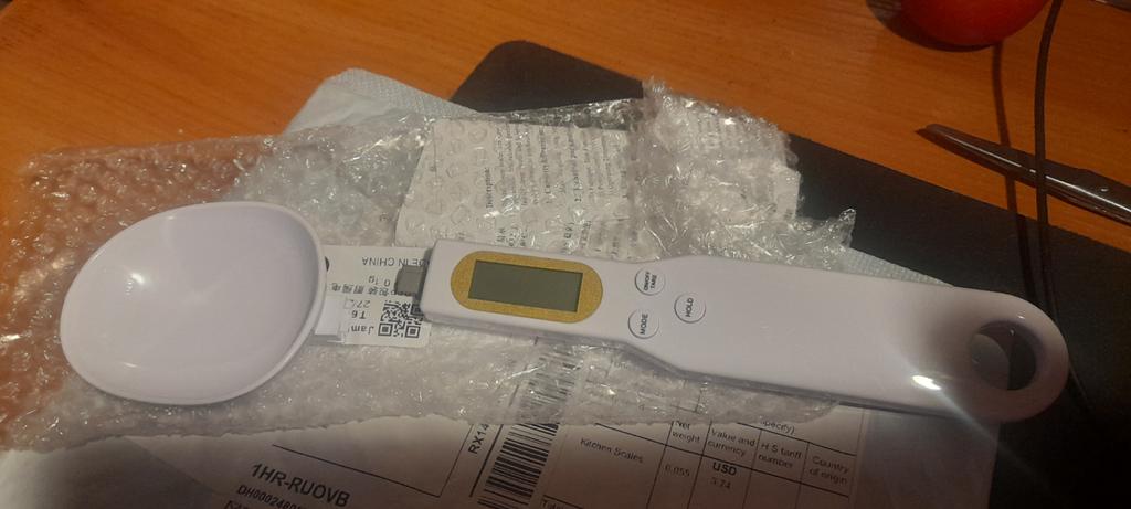 Прибор работает от двух мизинчиковых батареек. Бутылку с водой 5 литров показал весом 5,04. Для бытовых нужд нормально.