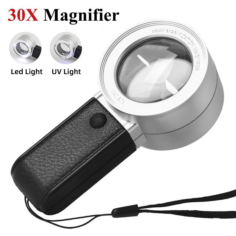 30-кратное увеличительное стекло со светодиодной УФ-подсветкой, профессиональные двухслойные оптические линзы для очков, ручная лупа для ювелирных изделий для пожилых людей — купить товар онлайн с бесплатной доставкой по всему миру!