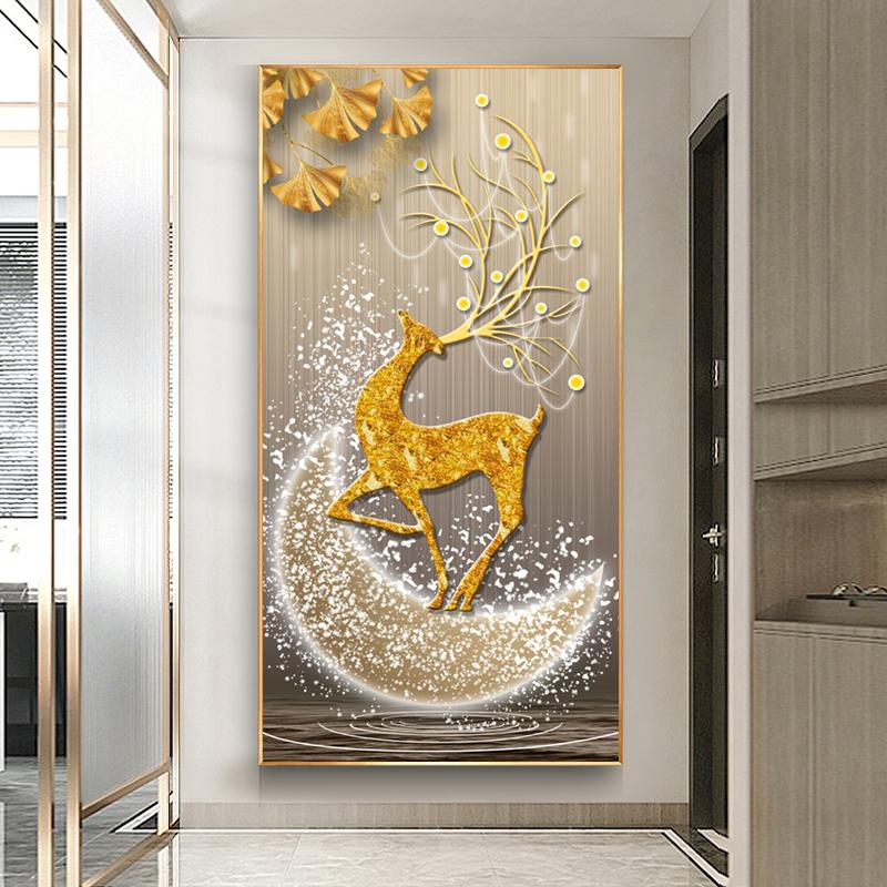 Абстрактные картины на холсте с золотым оленем в стиле фэншуй, постеры и принты из дзен-камня, современные роскошные настенные рисунки с листьями для декора крыльца без рамки