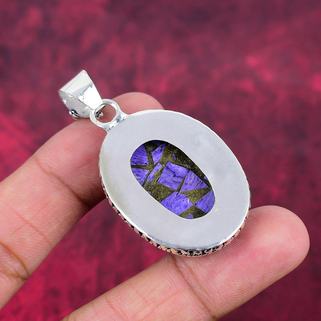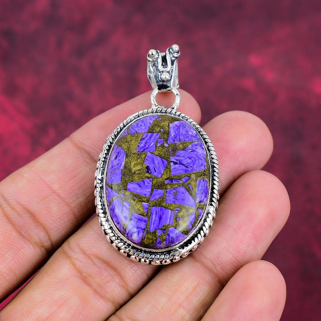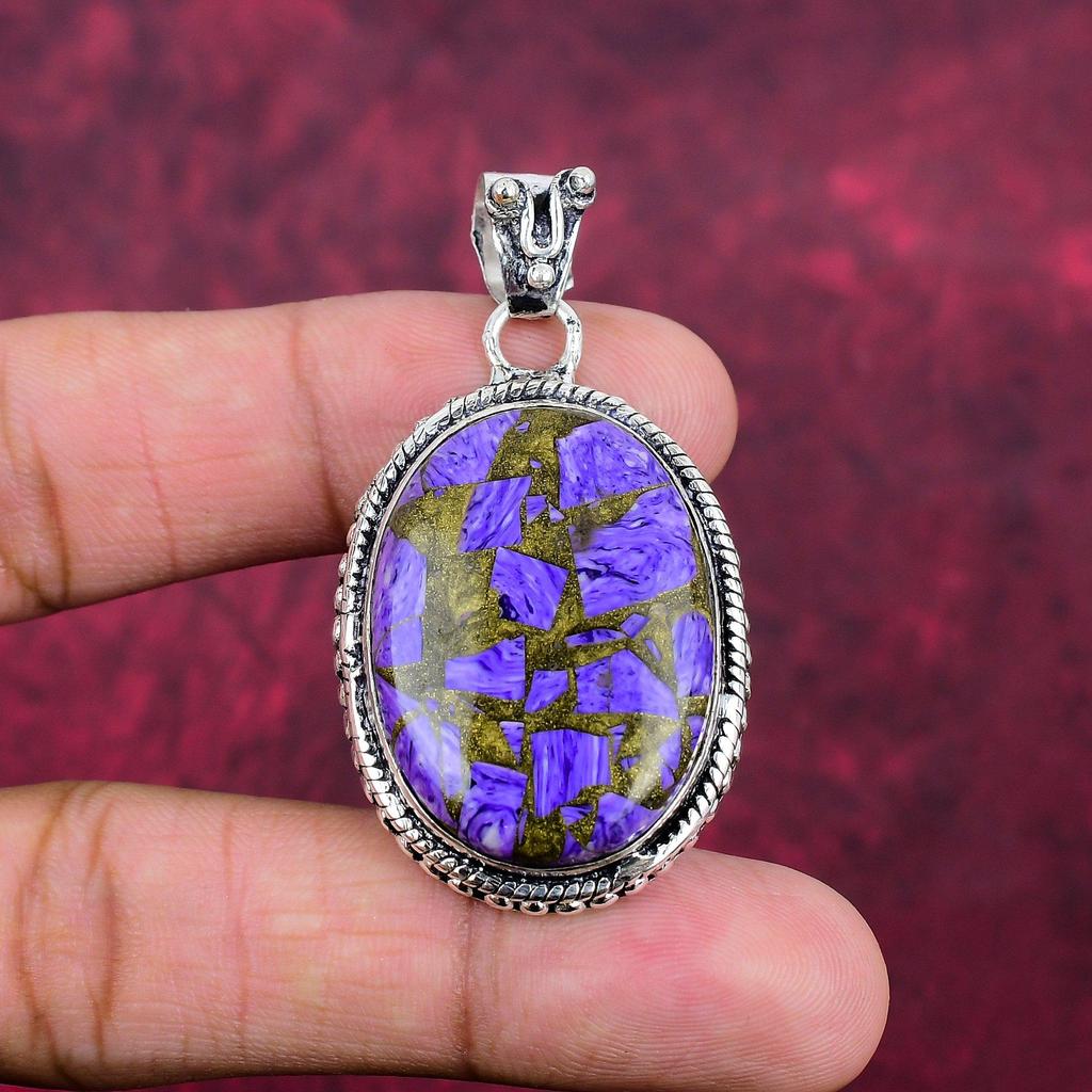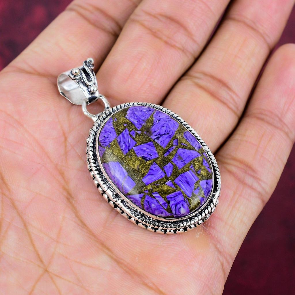 Медный кулон с чароитом, драгоценный камень, кулон из стерлингового серебра 925 пробы, подарок ручной работы для жены, кулон, ювелирное изделие
