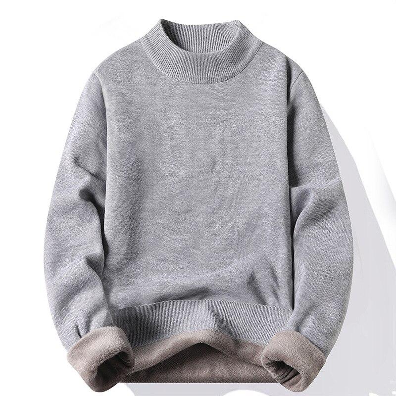 Мужской осенне-зимний утепленный пуловер большого размера с длинными рукавами, рубашка с круглым вырезом, свободный топ, повседневный спортивный свитер