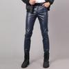 Мужские кожаные брюки с эластичной резинкой на талии, брюки для бега из искусственной кожи, мотоциклетные брюки, байкерские брюки