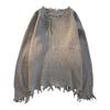 Мужской осенне-зимний рваный пуловер большого размера с длинными рукавами, вязаный свитер с круглым вырезом, свободный топ, повседневный спортивный свитер в стиле ретро