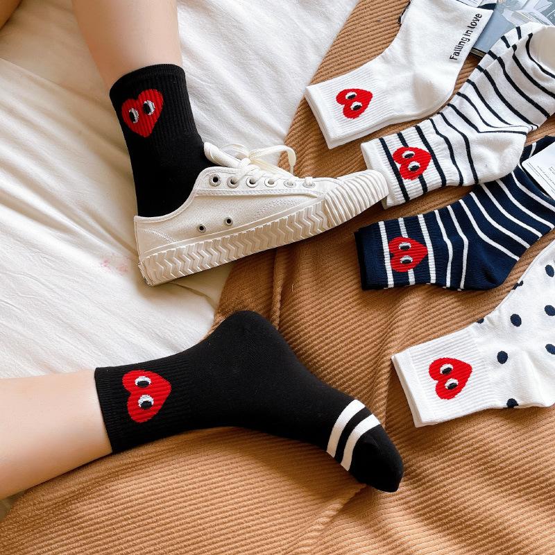 3 пары носков. Модный принт в форме сердца с вышивкой. Идеально подходит для любого случая. Женские носки. Стильные носки в полоску. Аксессуары.