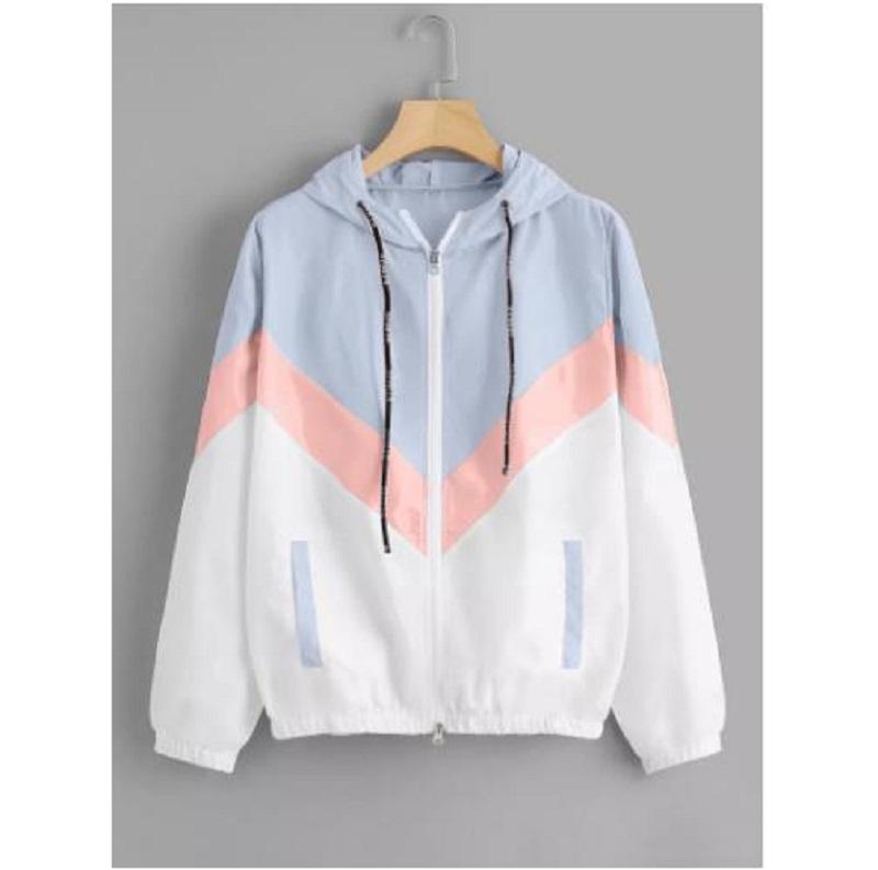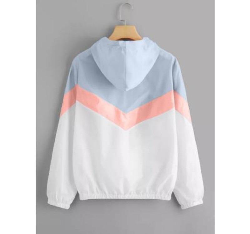 Модная ветровка с капюшоном, женская элегантная куртка-бомбер с цветными блоками и молнией, повседневное пальто, верхняя одежда, дождевик