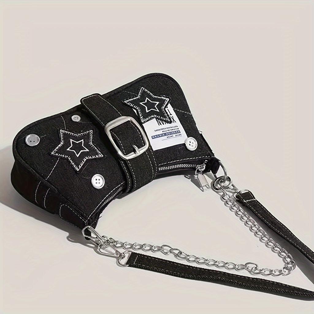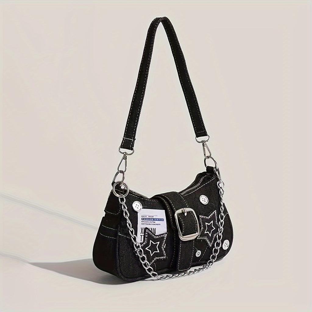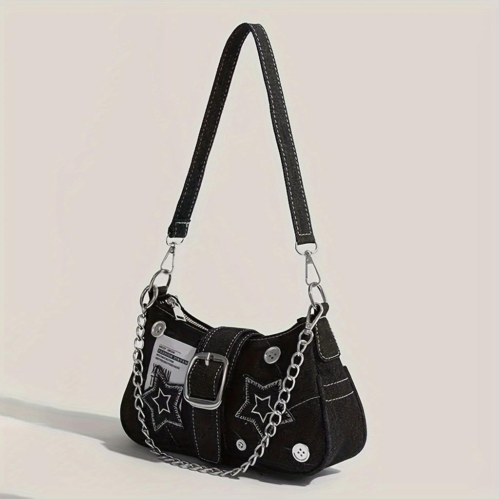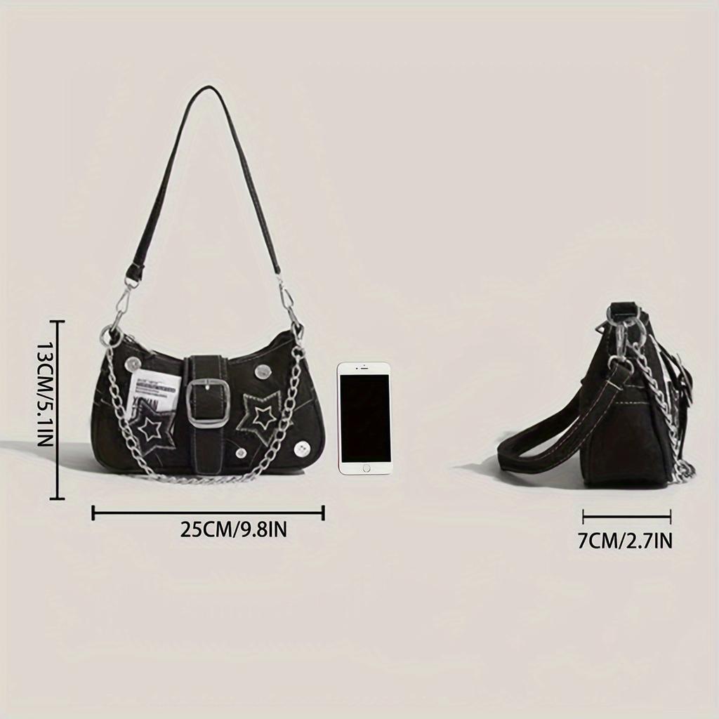 Винтажная сумка через плечо в стиле Y2K, стильная сумка для подмышек с пряжкой и звездным узором, с ремешком-цепочкой для женщин