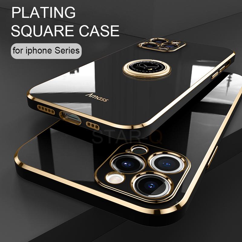 Чехол-держатель для телефона с квадратным кольцом и покрытием для iPhone 11 12 Pro Max 12pro 11pro 8 7 6 S Plus 10 X Xr, роскошный силиконовый чехол-подставка