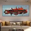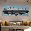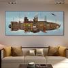 Ретро дирижабль в стиле стимпанк, атомпанк, дизельпанк, фэнтези, холст, картина, настенное искусство, винтажные постеры с космическим кораблем для декора гостиной