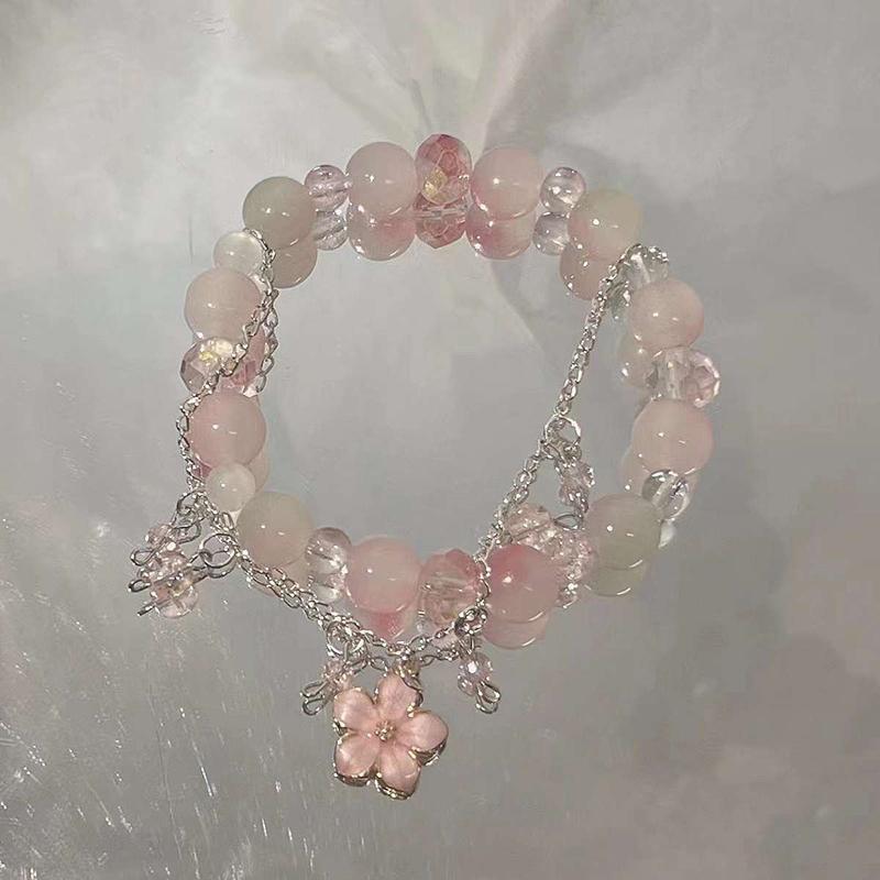 Милый маленький персиковый цветущий браслет с бусинами, подвеска для женщин и девочек, легкий роскошный эластичный браслет, ювелирные аксессуары
