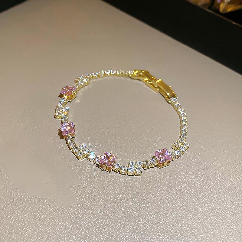 Легкий роскошный розовый браслет из циркония для женщин и девочек, изысканный блестящий браслет, ювелирные изделия, аксессуары, подарки — купить товар онлайн с бесплатной доставкой по всему миру!