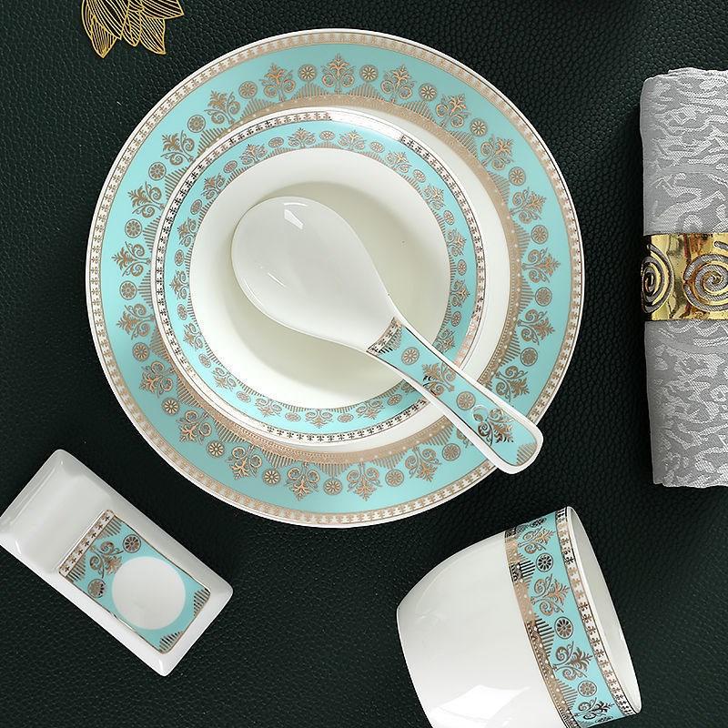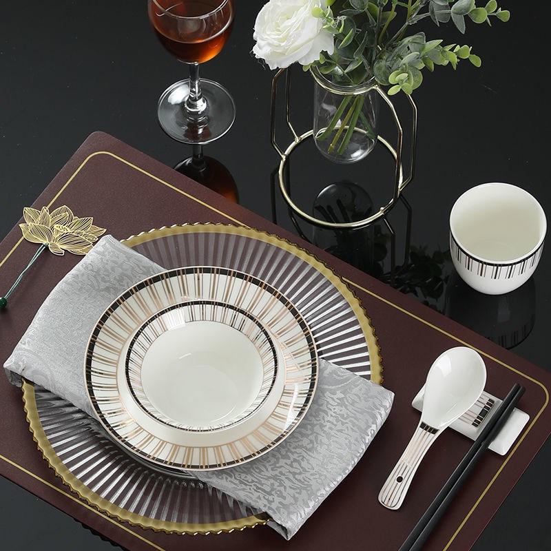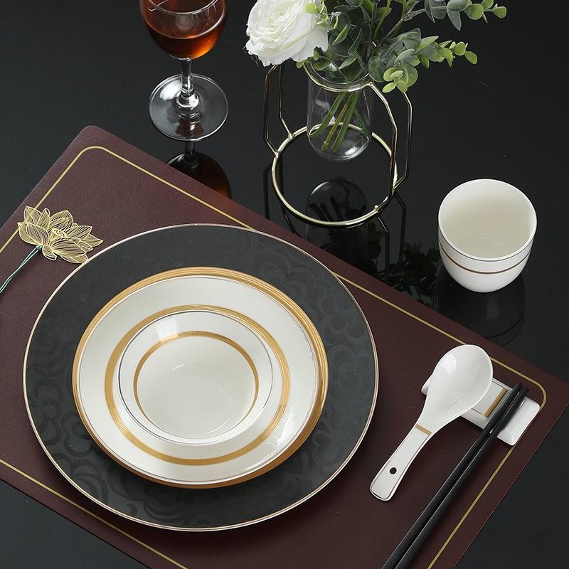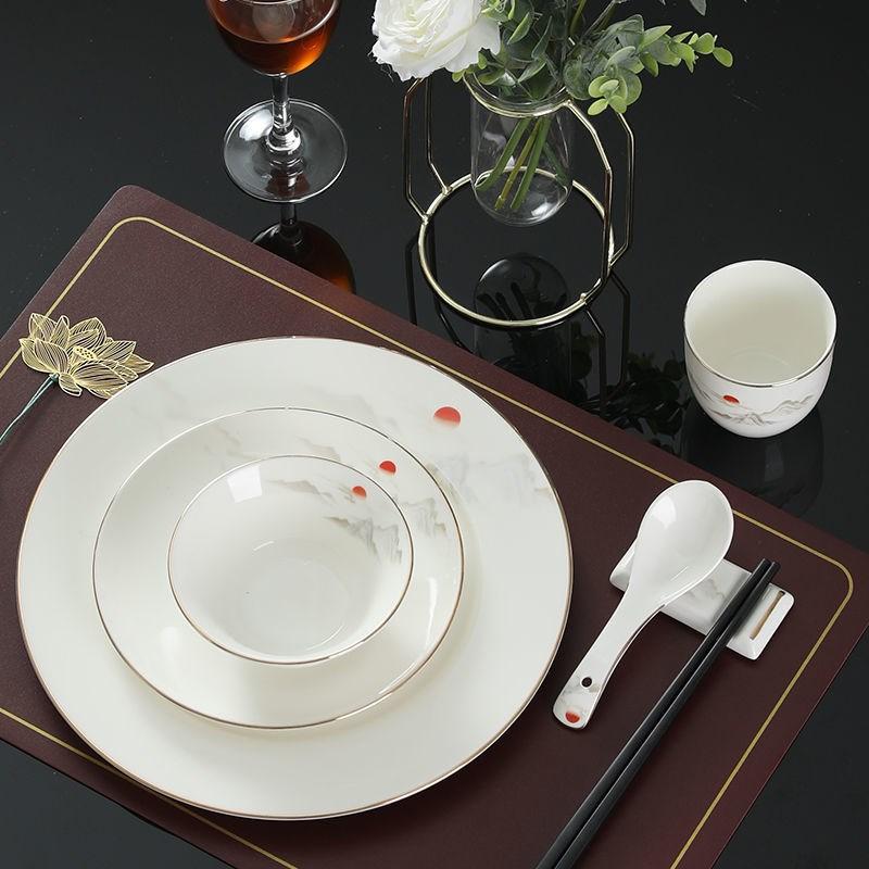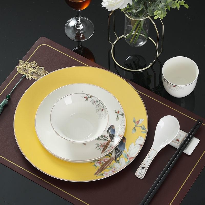 Новая китайская посуда для гостиничного стола, набор из трех предметов, костяное блюдо, чаша с крыльями, чашка для чая, ложка для супа, керамическая посуда для отеля, клуба