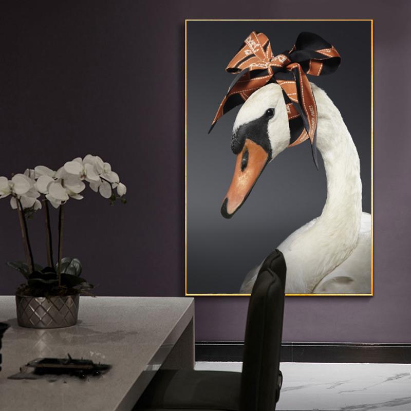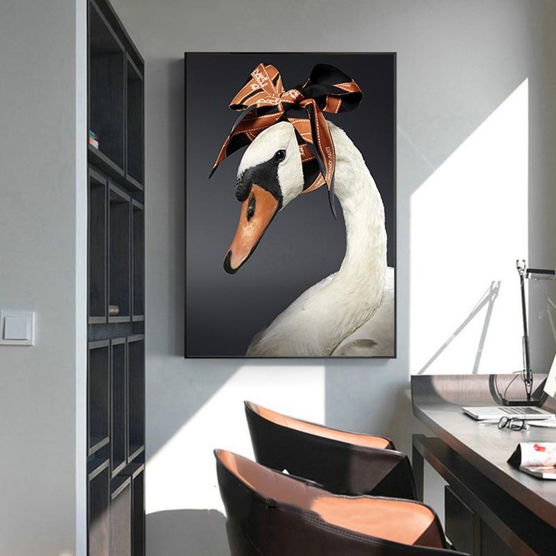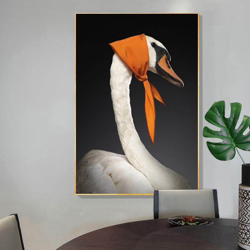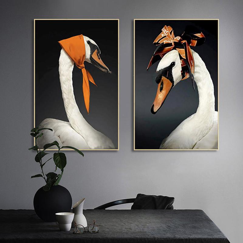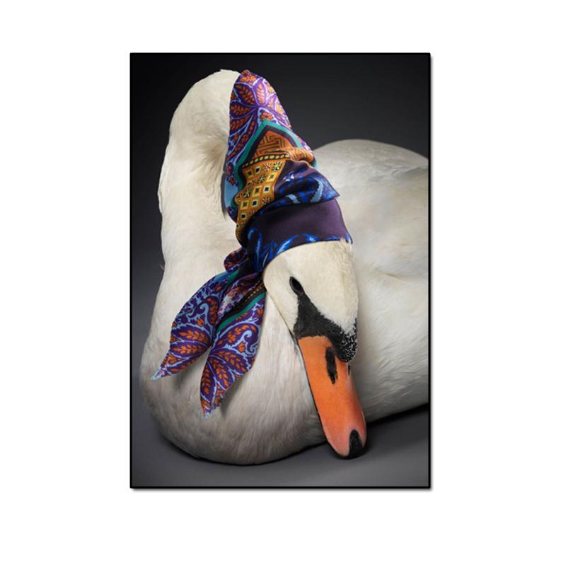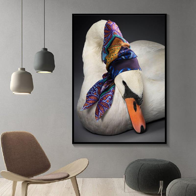 Шелковый шарф, забавный лебедь, холст, картина, настенное искусство, креативные постеры и принты с животными для детской комнаты, гостиной, домашний декор, Cuadros